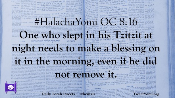 #HalachaYomi OC 8:16 One who slept in his Tzitzit at night needs to make a blessing on it in the morning, even if he did not remove it.