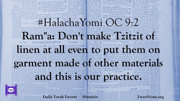 #HalachaYomi OC 9:2 Ram”a: Don’t make Tzitzit of linen at all even to put them on garment made of other materials and this is our practice.