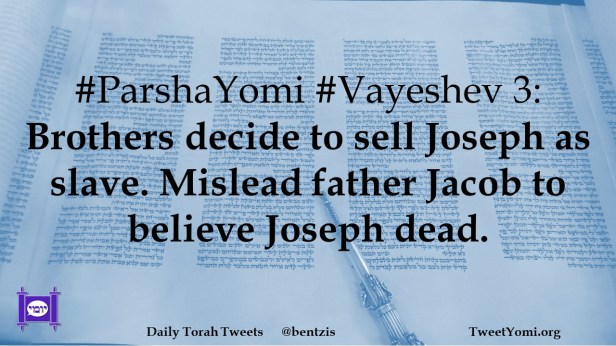 ParshaYomi, Vayeshev #ParshaYomi #Vayeshev 3 Date: January 4, 2021Author: ysspitz #ParshaYomi #Vayeshev 3: Brothers decide to sell Joseph as slave. Mislead father Jacob to believe Joseph dead. Share this: Share on X (Opens in new window) X Share on Facebook (Opens in new window) Facebook Like Loading... Related