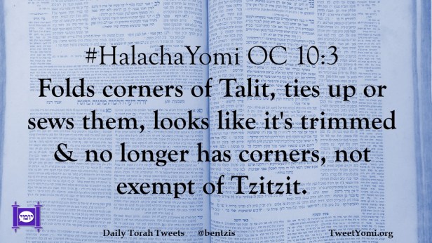 #HalachaYomi OC 10:3 Folds corners of Talit, ties up or sews them, looks like it’s trimmed & no longer has corners, not exempt of Tzitzit.