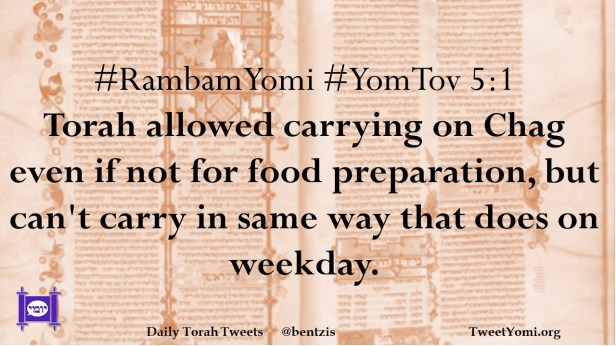 #RambamYomi #YomTov 5:1 Torah allowed carrying on Chag even if not for food preparation, but can’t carry in same way that does on weekday.