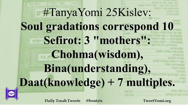 #TanyaYomi 25Kislev: Soul gradations correspond 10 Sefirot: 3 “mothers”: Chohma(wisdom), Bina(understanding), Daat(knowledge) + 7 multiples.