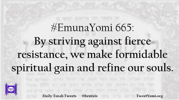 EmunaYomi #EmunaYomi 665 Date: January 13, 2021Author: ysspitz #EmunaYomi 665: By striving against fierce resistance, we make formidable spiritual gain and refine our souls. Share this: Share on X (Opens in new window) X Share on Facebook (Opens in new window) Facebook Like Loading... Related
