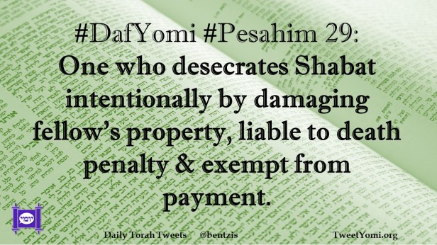 DafYomi, Pesahim #DafYomi #Pesahim 29 Date: January 20, 2021Author: ysspitz #DafYomi #Pesahim 29: One who desecrates Shabat intentionally by damaging fellow’s property, liable to death penalty & exempt from payment. Share this: Share on X (Opens in new window) X Share on Facebook (Opens in new window) Facebook Like Loading... Related
