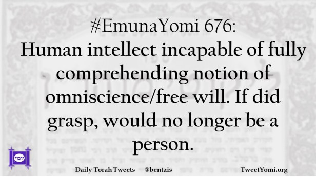 #EmunaYomi 676: Human intellect incapable of fully comprehending notion of omniscience/free will. If did grasp, would no longer be a person.