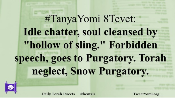 #TanyaYomi 8Tevet: Idle chatter, soul cleansed by “hollow of sling.” Forbidden speech, goes to Purgatory. Torah neglect, Snow Purgatory.
