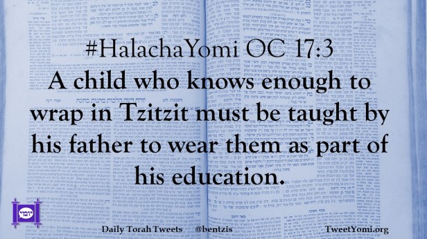 #HalachaYomi OC 17:3 A child who knows enough to wrap in Tzitzit must be taught by his father to wear them as part of his education.