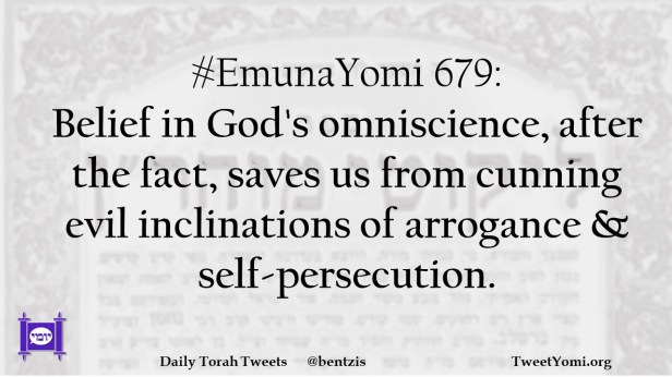 #EmunaYomi 679: Belief in God’s omniscience, after the fact, saves us from cunning evil inclinations of arrogance & self-persecution.