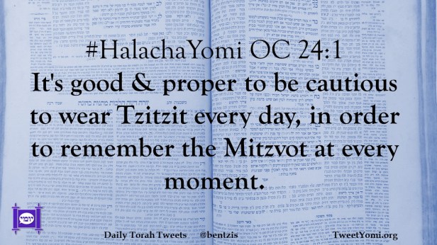 #HalachaYomi OC 24:1 It’s good & proper to be cautious to wear Tzitzit every day, in order to remember the Mitzvot at every moment.