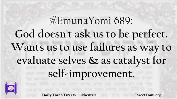 #EmunaYomi 689: God doesn’t ask us to be perfect. Wants us to use failures as way to evaluate selves & as catalyst for self-improvement.
