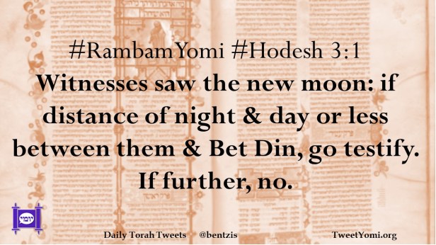 #RambamYomi #Hodesh 3:1 Witnesses saw the new moon: if distance of night & day or less between them & Bet Din, go testify. If further, no.