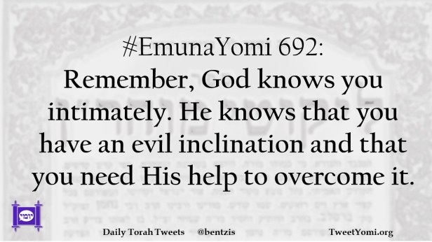 #EmunaYomi 692: Remember, God knows you intimately. He knows that you have an evil inclination and that you need His help to overcome it.