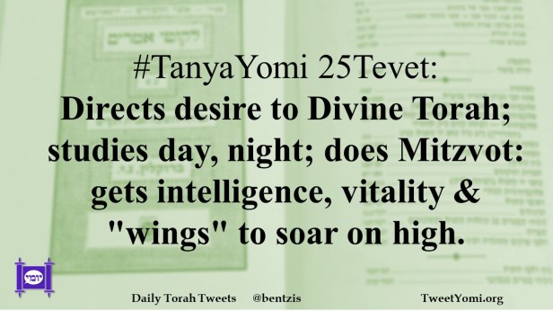 #TanyaYomi 25Tevet: Directs desire to Divine Torah; studies day, night; does Mitzvot: gets intelligence, vitality & “wings” to soar on high.