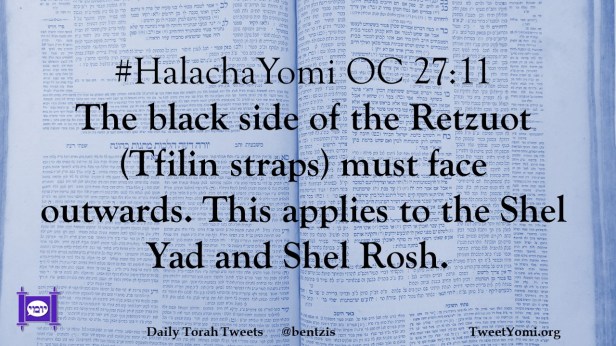 #HalachaYomi OC 27:11 The black side of the Retzuot (Tfilin straps) must face outwards. This applies to the Shel Yad and Shel Rosh.