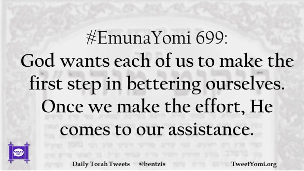 #EmunaYomi 699: God wants each of us to make the first step in bettering ourselves. Once we make the effort, He comes to our assistance.