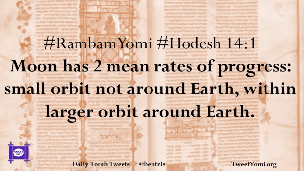 Hodesh, RambamYomi #RambamYomi #Hodesh 14:1 Date: March 7, 2021Author: ysspitz #RambamYomi #Hodesh 14:1 Moon has 2 mean rates of progress: small orbit not around Earth, within larger orbit around Earth. Share this: Share on X (Opens in new window) X Share on Facebook (Opens in new window) Facebook Like Loading... Related