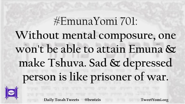 #EmunaYomi 701: Without mental composure, one won’t be able to attain Emuna & make Tshuva. Sad & depressed person is like prisoner of war.
