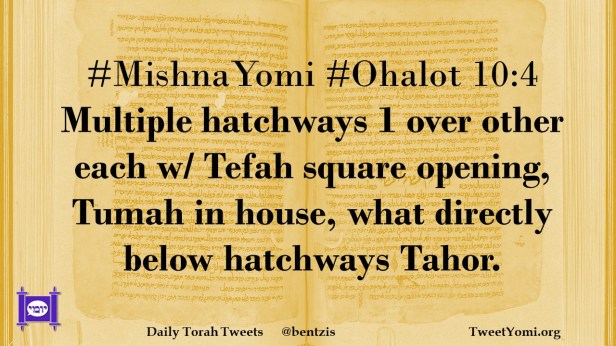 #MishnaYomi #Ohalot 10:4 Multiple hatchways 1 over other each w/ Tefah square opening, Tumah in house, what directly below hatchways Tahor.
