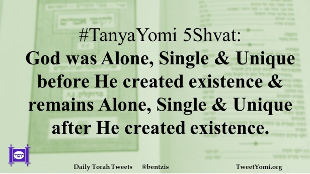 #TanyaYomi 5Shvat: God was Alone, Single & Unique before He created existence & remains Alone, Single & Unique after He created existence.