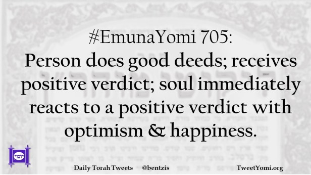 #EmunaYomi 705: Person does good deeds; receives positive verdict; soul immediately reacts to a positive verdict with optimism & happiness.