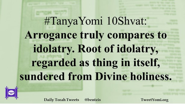 #TanyaYomi 10Shvat: Arrogance truly compares to idolatry. Root of idolatry, regarded as thing in itself, sundered from Divine holiness.
