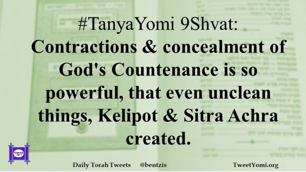 #TanyaYomi 9Shvat: Contractions & concealment of God’s Countenance is so powerful, that even unclean things, Kelipot & Sitra Achra created.
