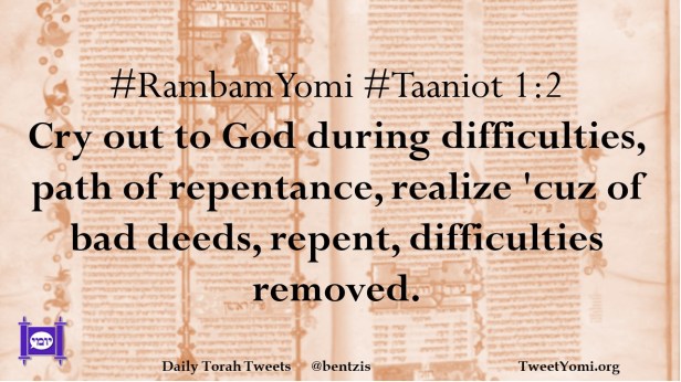 #RambamYomi #Taaniot 1:2 Cry out to God during difficulties, path of repentance, realize ‘cuz of bad deeds, repent, difficulties removed.