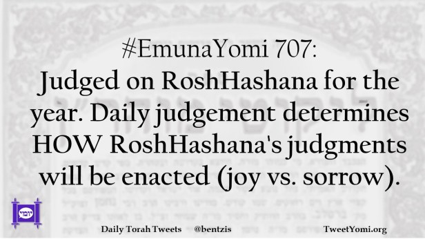 #EmunaYomi 707: Judged on RoshHashana for the year. Daily judgement determines HOW RoshHashana’s judgments will be enacted (joy vs. sorrow).