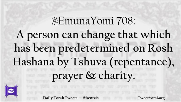 #EmunaYomi 708: A person can change that which has been predetermined on Rosh Hashana by Tshuva (repentance), prayer & charity.