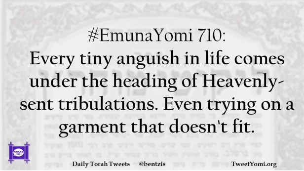 #EmunaYomi 710: Every tiny anguish in life comes under the heading of Heavenly-sent tribulations. Even trying on a garment that doesn’t fit.