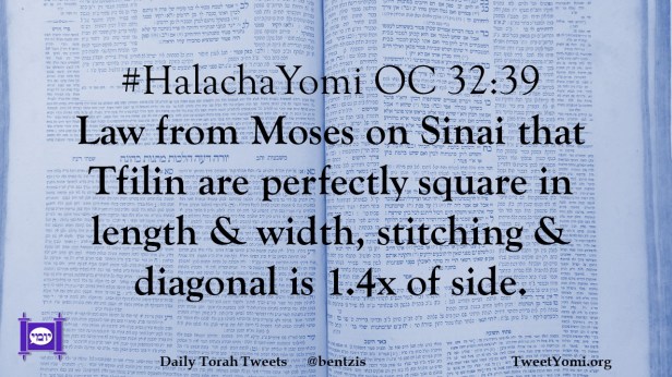 #HalachaYomi OC 32:39 Law from Moses on Sinai that Tfilin are perfectly square in length & width, stitching & diagonal is 1.4x of side.