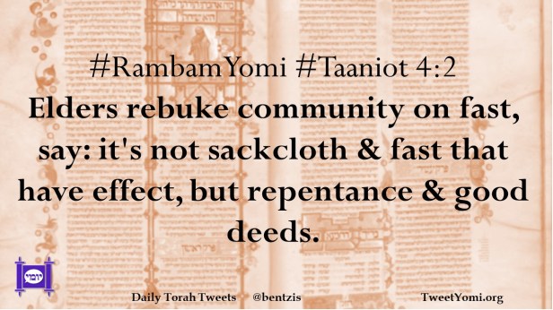 #RambamYomi #Taaniot 4:2 Elders rebuke community on fast, say: it’s not sackcloth & fast that have effect, but repentance & good deeds.