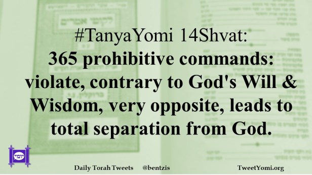 #TanyaYomi 14Shvat: 365 prohibitive commands: violate, contrary to God’s Will & Wisdom, very opposite, leads to total separation from God.