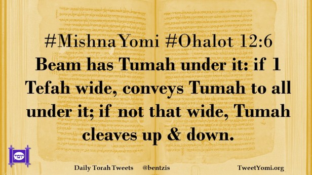 #MishnaYomi #Ohalot 12:6 Beam has Tumah under it: if 1 Tefah wide, conveys Tumah to all under it; if not that wide, Tumah cleaves up & down.