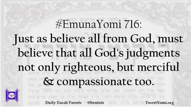 #EmunaYomi 716: Just as believe all from God, must believe that all God’s judgments not only righteous, but merciful & compassionate too.