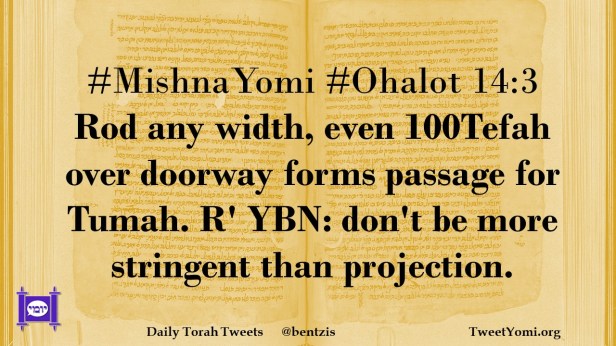 #MishnaYomi #Ohalot 14:3 Rod any width, even 100Tefah over doorway forms passage for Tumah. R’ YBN: don’t be more stringent than projection.