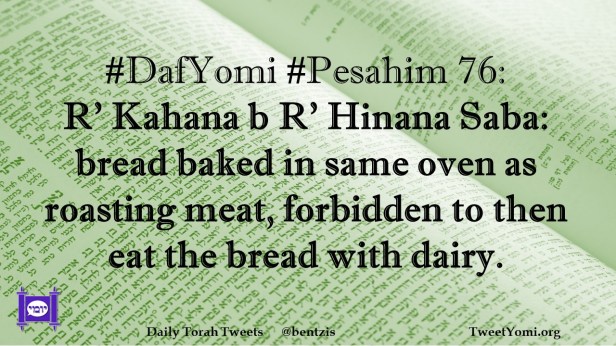 DafYomi, Pesahim #DafYomi #Pesahim 76 Date: April 14, 2021Author: ysspitz #DafYomi #Pesahim 76: R’ Kahana b R’ Hinana Saba: bread baked in same oven as roasting meat, forbidden to then eat the bread with dairy. Share this: Share on X (Opens in new window) X Share on Facebook (Opens in new window) Facebook Like Loading... Related