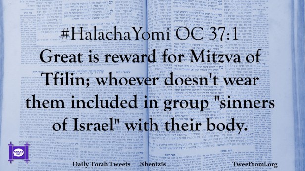 #HalachaYomi OC 37:1 Great is reward for Mitzva of Tfilin; whoever doesn’t wear them included in group “sinners of Israel” with their body.