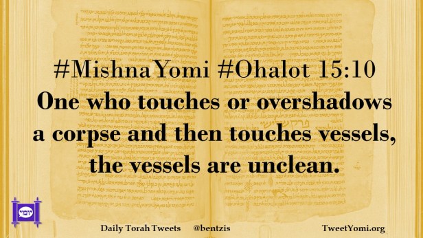 MishnaYomi, Ohalot #MishnaYomi #Ohalot 15:10 Date: April 16, 2021Author: ysspitz #MishnaYomi #Ohalot 15:10 One who touches or overshadows a corpse and then touches vessels, the vessels are unclean. Share this: Share on X (Opens in new window) X Share on Facebook (Opens in new window) Facebook Like Loading... Related