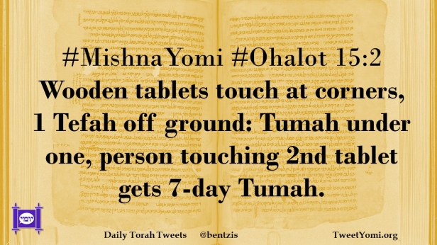 #MishnaYomi #Ohalot 15:2 Wooden tablets touch at corners, 1 Tefah off ground: Tumah under one, person touching 2nd tablet gets 7-day Tumah.