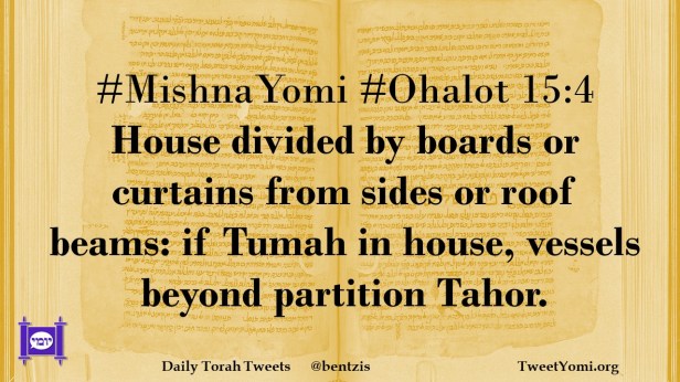#MishnaYomi #Ohalot 15:4 House divided by boards or curtains from sides or roof beams: if Tumah in house, vessels beyond partition Tahor.