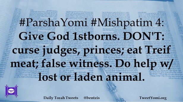 #ParshaYomi #Mishpatim 4: Give God 1stborns. DON’T: curse judges, princes; eat Treif meat; false witness. Do help w/ lost or laden animal.