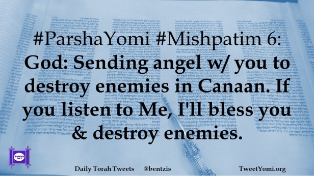 #ParshaYomi #Mishpatim 6: God: Sending angel w/ you to destroy enemies in Canaan. If you listen to Me, I’ll bless you & destroy enemies.