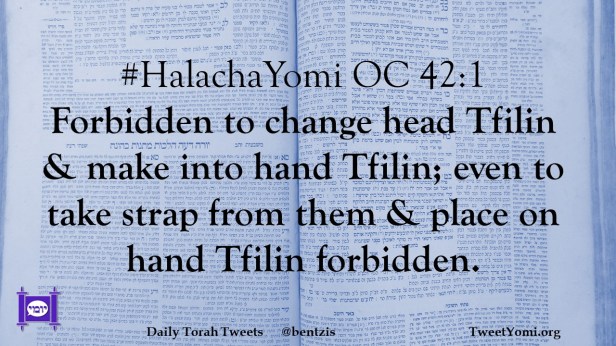 #HalachaYomi OC 42:1 Forbidden to change head Tfilin & make into hand Tfilin; even to take strap from them & place on hand Tfilin forbidden.