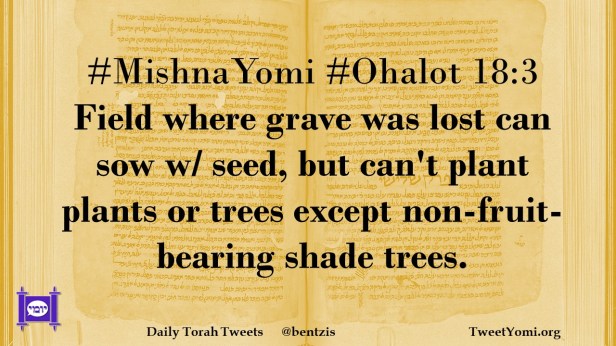 #MishnaYomi #Ohalot 18:3 Field where grave was lost can sow w/ seed, but can’t plant plants or trees except non-fruit-bearing shade trees.