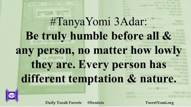 #TanyaYomi 3Adar: Be truly humble before all & any person, no matter how lowly they are. Every person has different temptation & nature.