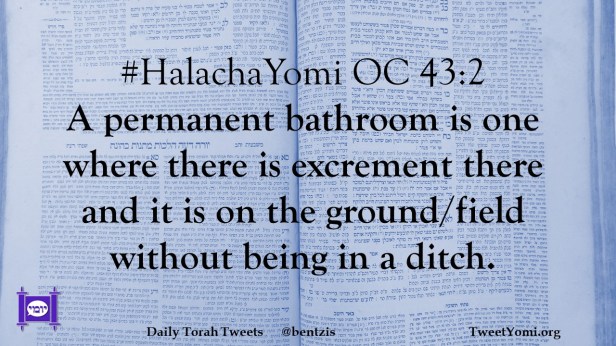 #HalachaYomi OC 43:2 A permanent bathroom is one where there is excrement there and it is on the ground/field without being in a ditch.