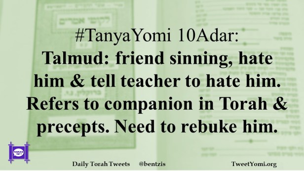 #TanyaYomi 10Adar: Talmud: friend sinning, hate him & tell teacher to hate him. Refers to companion in Torah & precepts. Need to rebuke him.