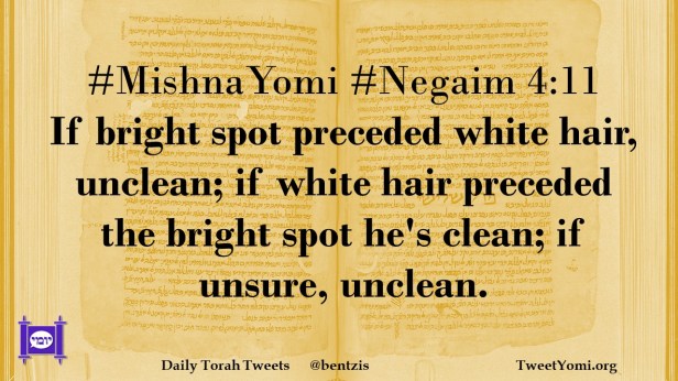 #MishnaYomi #Negaim 4:11 If bright spot preceded white hair, unclean; if white hair preceded the bright spot he’s clean; if unsure, unclean.