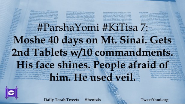 #ParshaYomi #KiTisa 7: Moshe 40 days on Mt. Sinai. Gets 2nd Tablets w/10 commandments. His face shines. People afraid of him. He used veil.